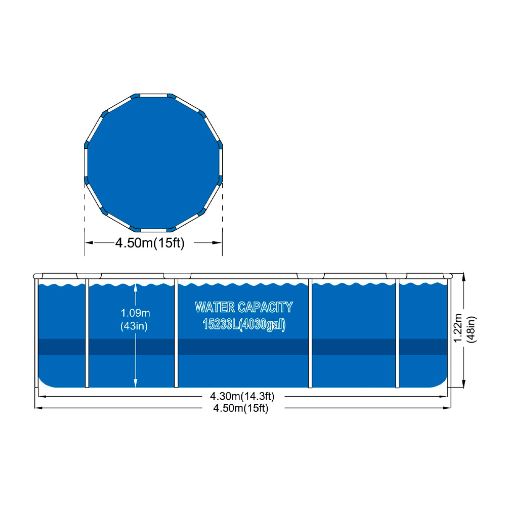 Diametro: 4,50 m Alt: 1,22 m Cap: 15233 L