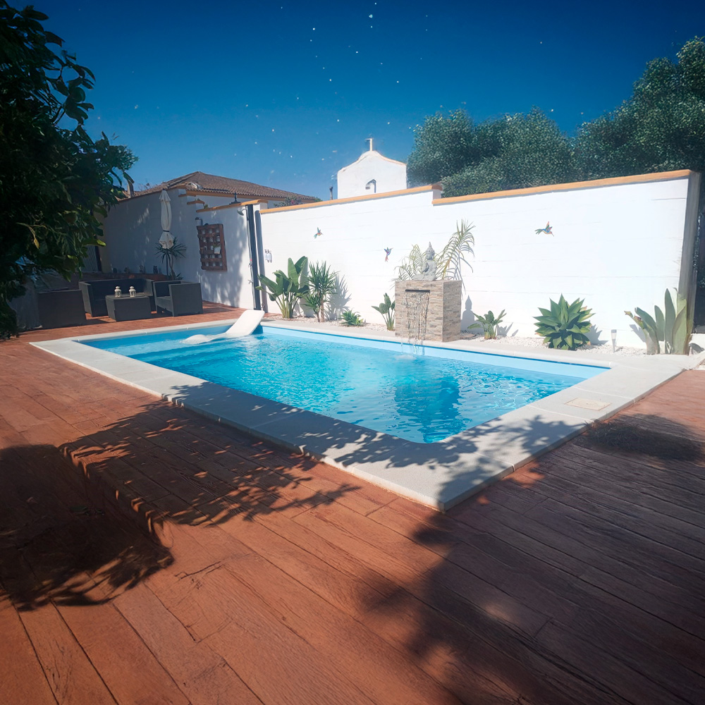 La Piscina Rectangular 7,00 x 3,00 es la elección perfecta para quienes buscan estilo, funcionalidad y durabilidad. Elegante en su diseño, este modelo ofrece dimensiones ideales que combinan buena capacidad para nadar con dimensiones que se adaptan fácilmente a espacios privados o jardines. Con un largo de 7 metros, un ancho de 3 metros y una profundidad variable de 1,25 a 1,70 metros, esta piscina proporciona suficiente espacio para la diversión y el relax.